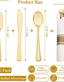 Supernal 120 Pack Gold Plastic Cutlery Set with Napkin, Wrapped Disposable Silverware, Pre Rolled Napkins